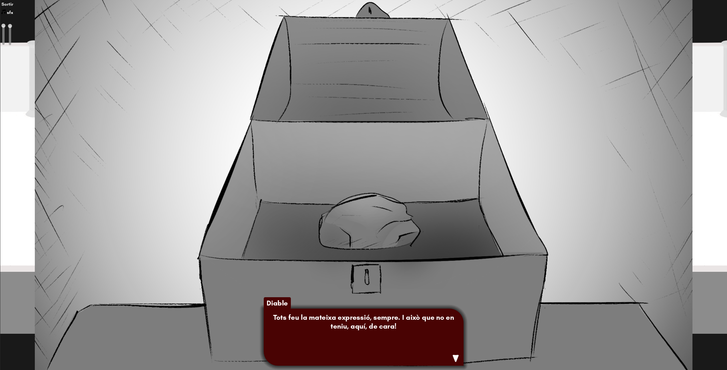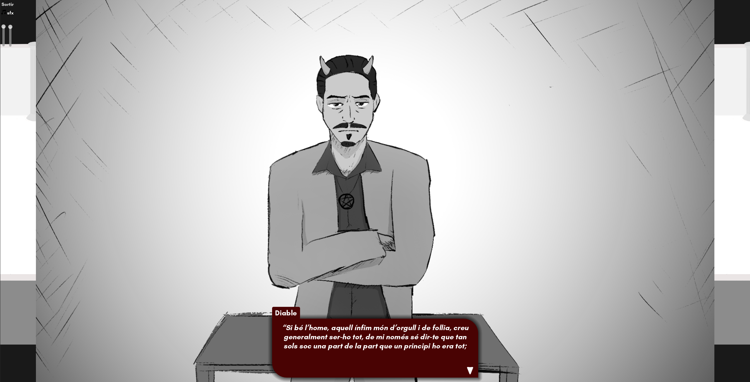 Crec que he fet alguna cosa i he trencat el joc! (He apretat la E quan no tocava abans d'agafar al primera porta, i m'ha aparegut un diàleg permanent que no podia saltar durant les tres fases. Al interactuar amb el dimoni, m'han saltat els crèdits directament).